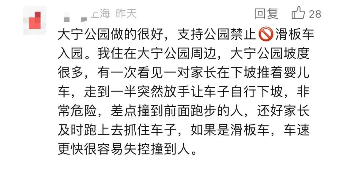他还提到,大宁公园作为市中心最大的公园,客流量比较大,特别是双休日,儿童滑板车、自行车在人流中穿行会给自身及周围游客带来安全隐患。