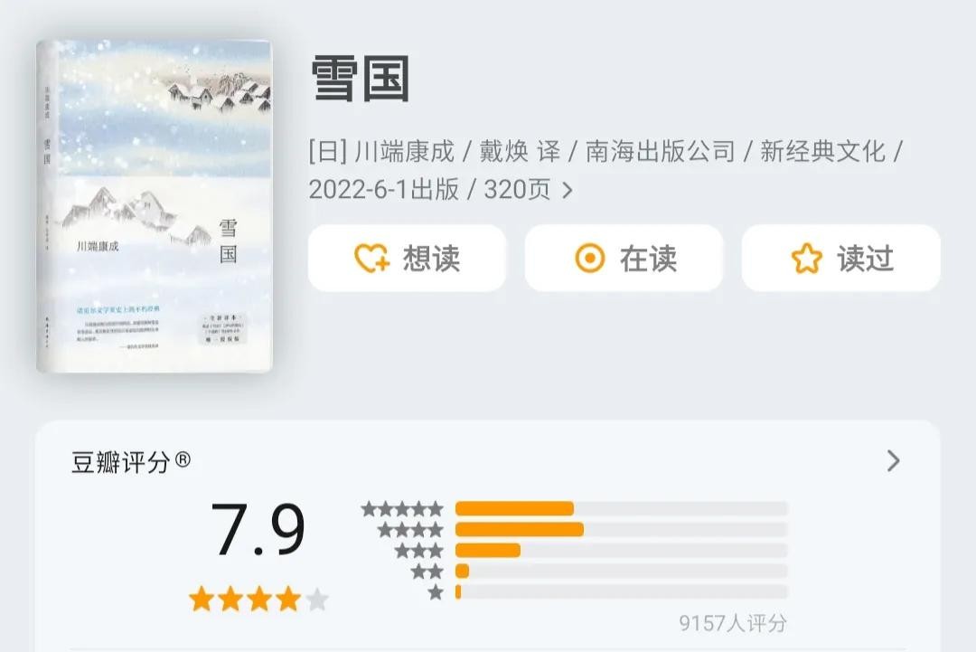 川端康成描绘了中年岛村与艺伎驹子、少女叶子在雪国的情感纠葛,文字空灵,体现了日本传统美学的幽玄与物哀。