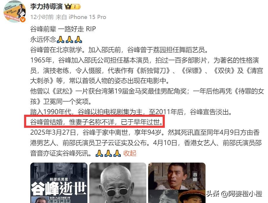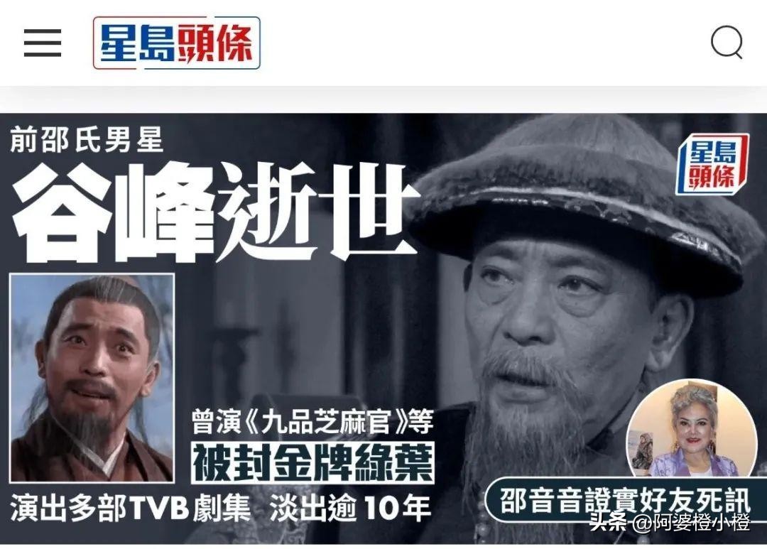4月10日,香港影坛传来噩耗,资深演员谷峰被证实于3月27日在家中离世,当天下午家里人发现的时候就已经安详的离开了,享年94岁。