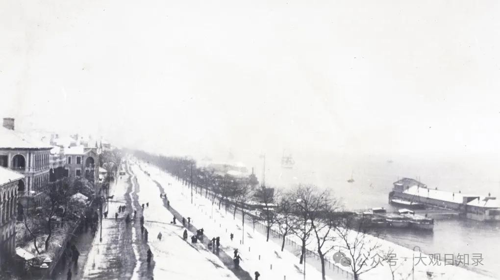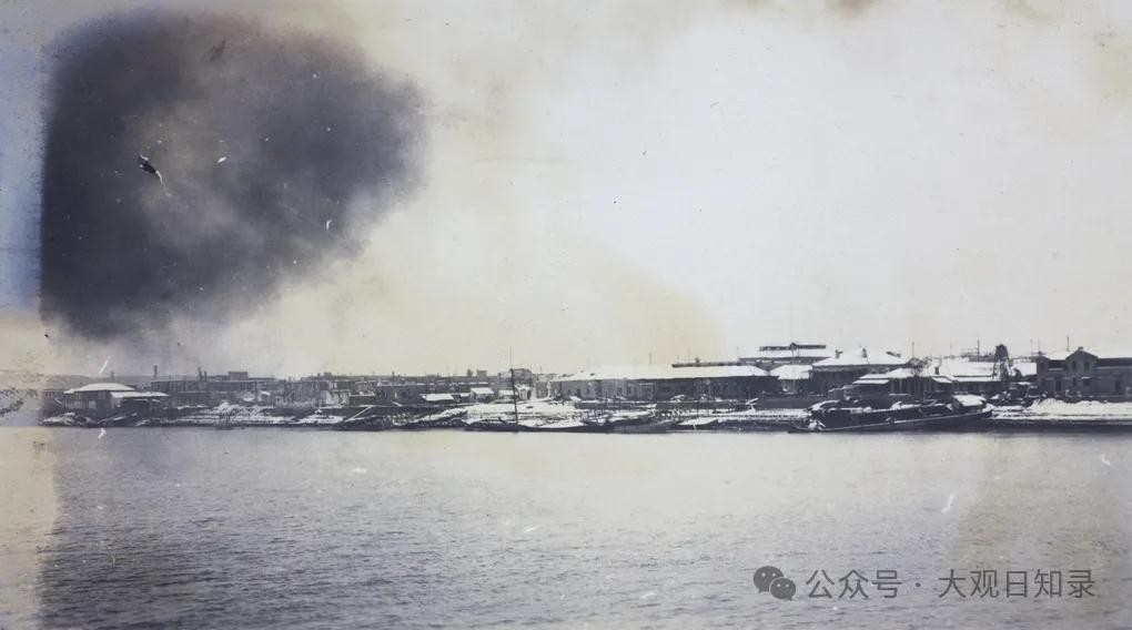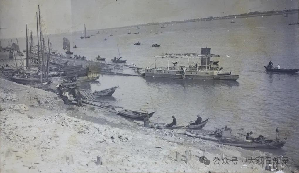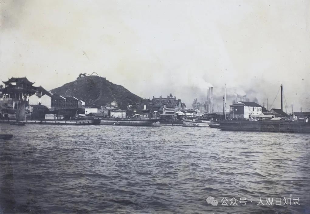 长江水域,似乎是从船上拍摄的汉口江岸。