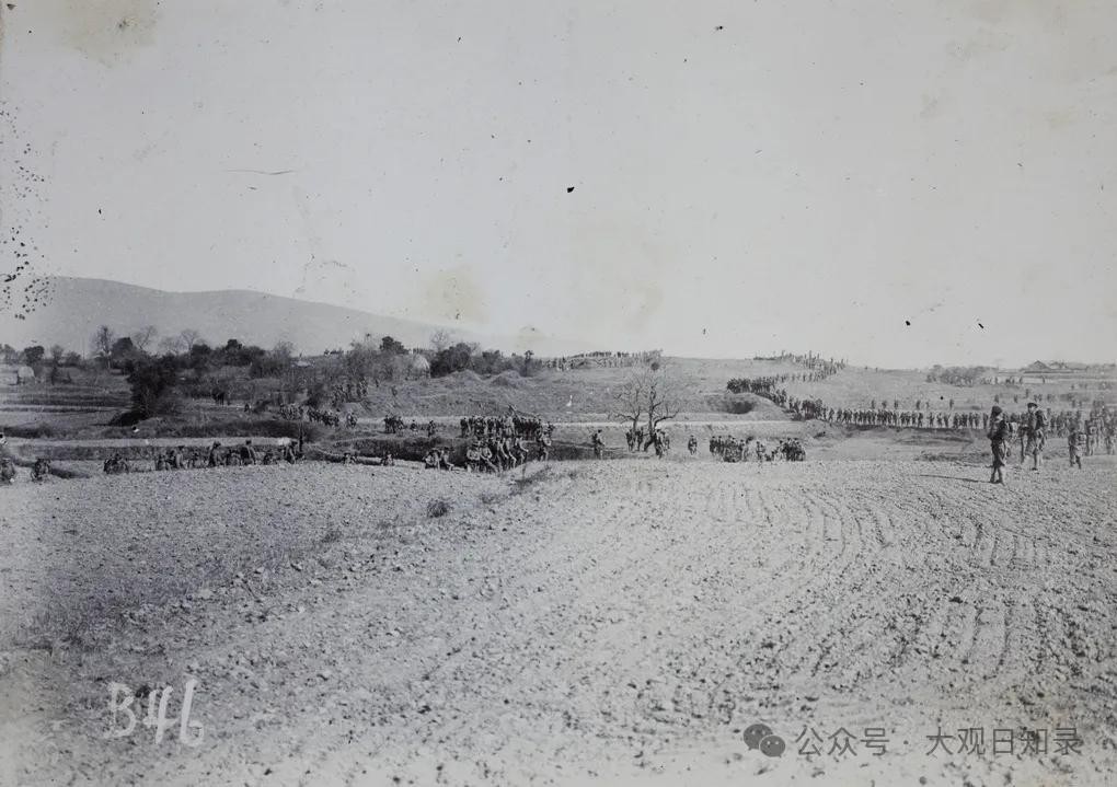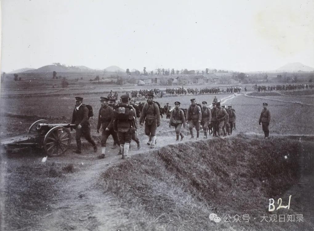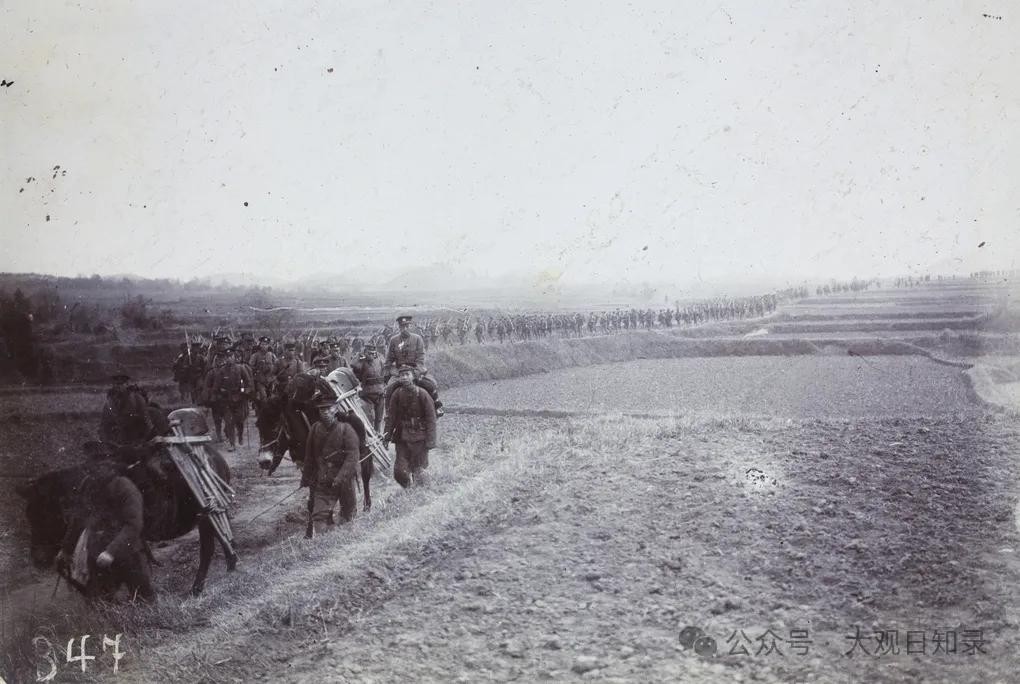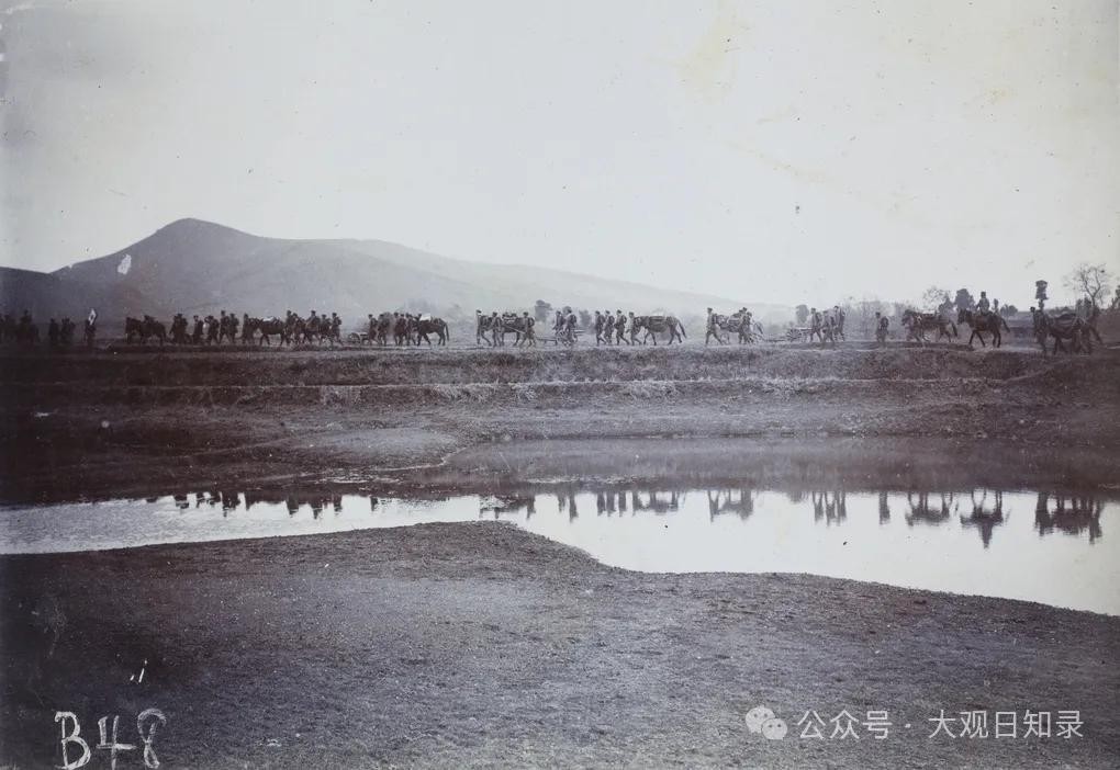 对于这张照片,有详细的解读:清军炮兵从位于汉口以北约二十英里处的蛇口镇出发,穿过了两镇之间的平原,并于10 月24 日向汉口附近的刘家庙革命军发起了进攻。