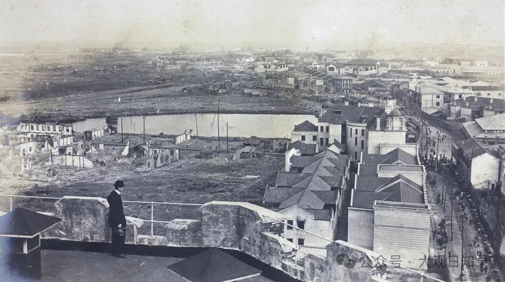 火灾后的汉口。应该也是从水塔上拍摄的照片。