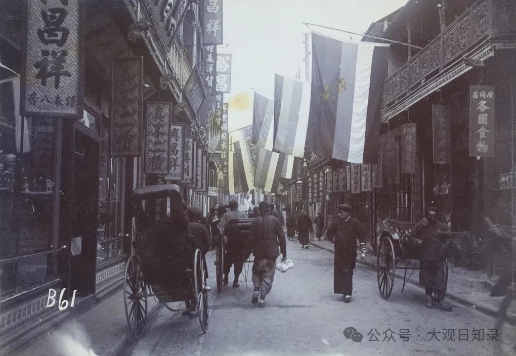 一条商店街,两边招牌林立,挂满了五色旗,应该是汉口。