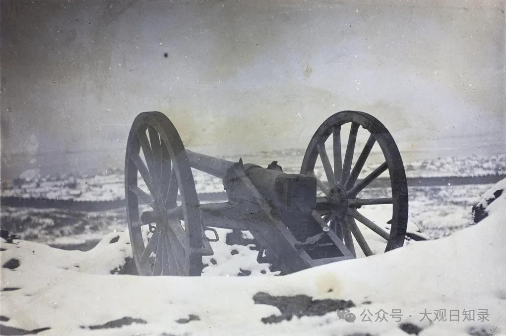 汉阳龟山上的火炮,可以看到已是白雪皑皑的冬日景象。