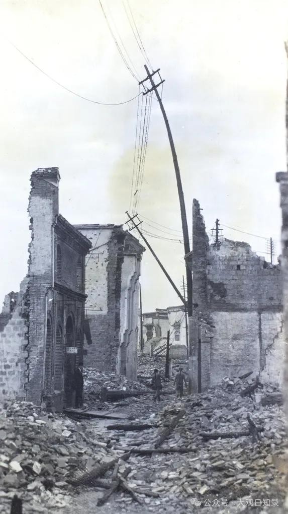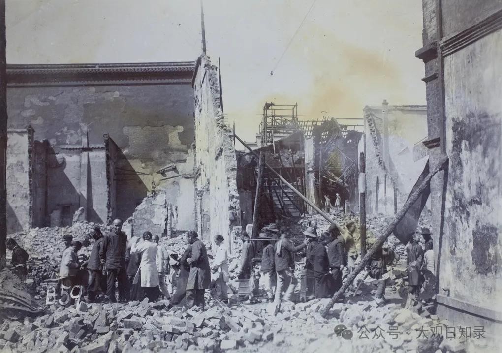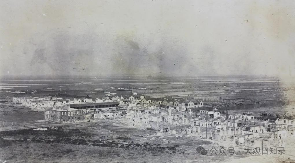 大火过后的汉口。在汉口保卫战中,清军纵火焚烧民房,十里街区一片火海,大量建筑被焚毁。