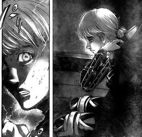 他看到船只的到来,直接解开斗篷,变身超大巨人,将马莱的援助船全部捣毁。可惜的是这次我们只看到艾尔敏的几个镜头,连超大巨人是怎样的也没有看到,看来后面他还有很多重要的伏笔。