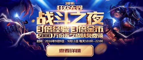 LOl战斗之夜当天登陆并进行对局,即可领取永久皮肤!