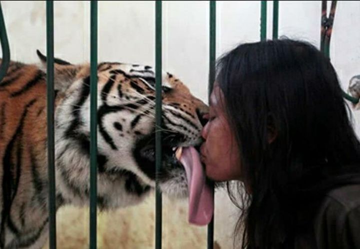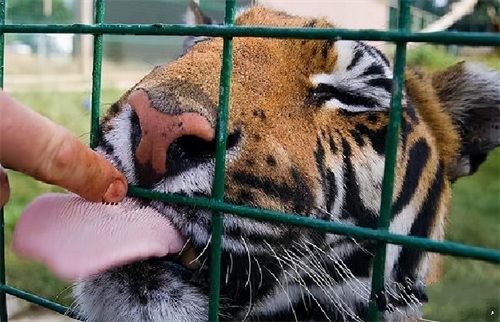 那很多人问了,经常看到老虎舔饲养员,为什么饲养员没受伤,这是因为力度控制。