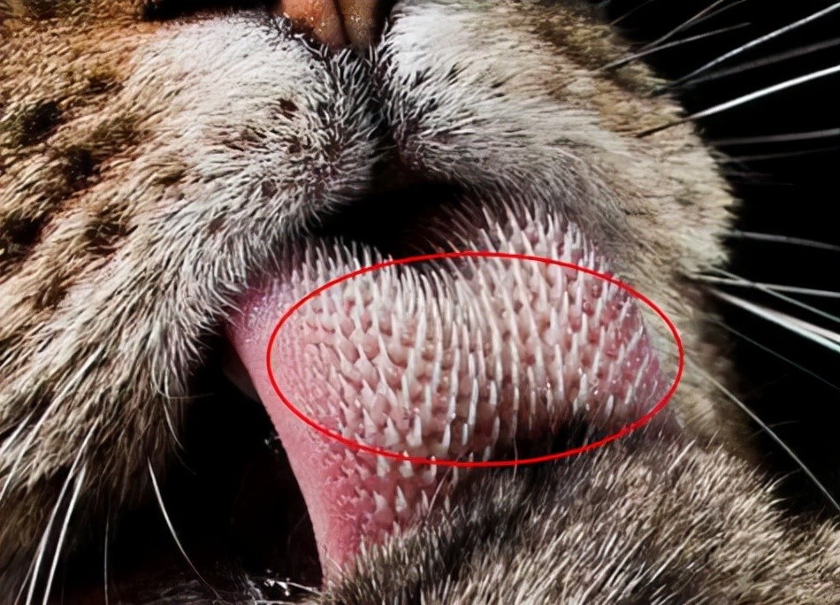 如果仔细观察 老虎舌头的倒刺平时不明显 一旦能勾住皮毛 立刻就展现出倒刺原本的姿态。