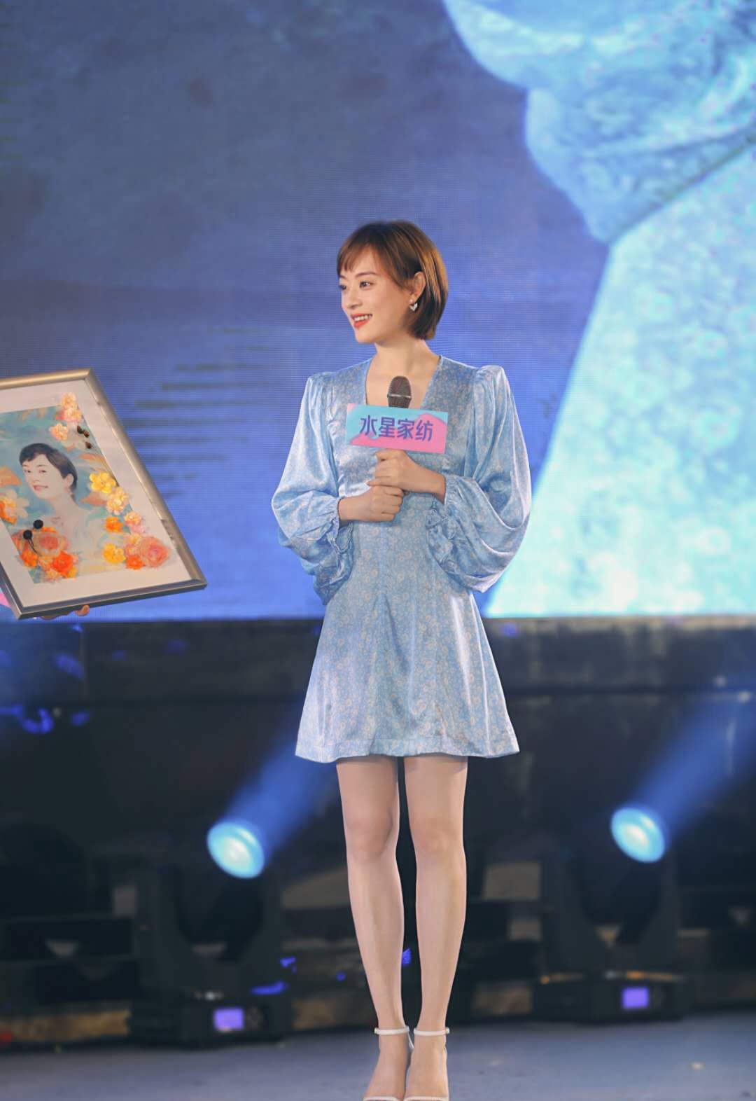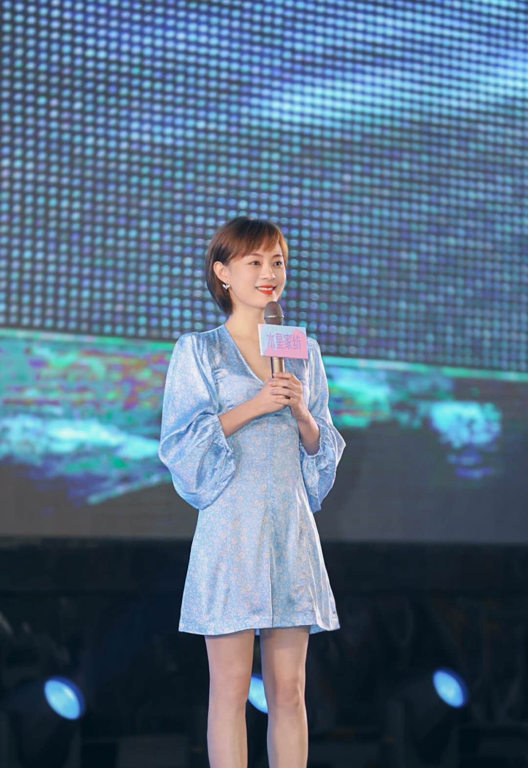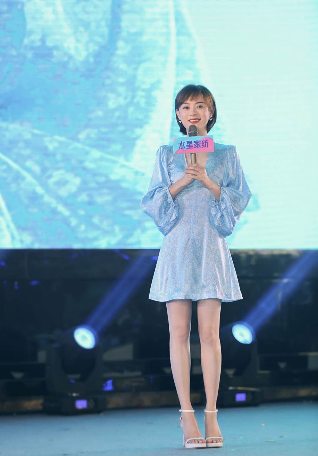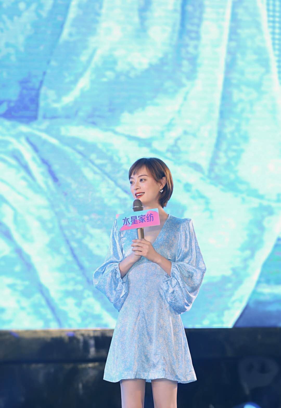 将耳朵露出来,孙俪还佩戴了精致的小耳环点缀造型,不得不说,她在细节的处理上也是十分到位的。当然,漂亮的新发型也要搭配一身漂亮的服饰才更ok,所以,孙俪选择了一款浅蓝色的泡泡袖连衣短裙。