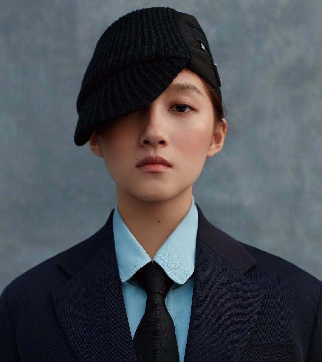 这张照片中,关晓彤换上了天蓝色衬衫以及黑色西装,并且打上了领带,头上带着半遮面的黑色贝雷帽,不得不说这套造型对于她来说是合适的,而且关晓彤本来就是巴掌脸,不要用过多的表情,就这样像一位国民女特务一般。