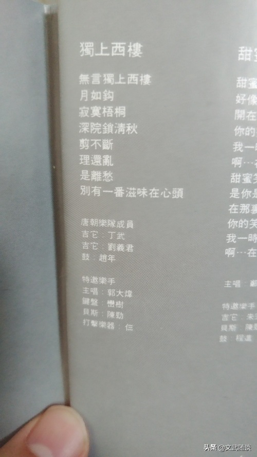 《告别的摇滚》这张翻唱邓丽君歌曲的纪念专辑是由日本音乐界一手促成的,翻唱改编水平可以说非常高。在这张专辑当中唐朝乐队的主唱丁武不知道为什么没有开口演唱,署名唐朝乐队成员的《独上西楼》是由郭大炜演唱的,唐朝乐队伴奏改编的,不过郭担任过唐朝乐队的经纪人。专辑一共10首歌曲每个乐队两首歌,但是唐朝的参与方式比较特立独行。