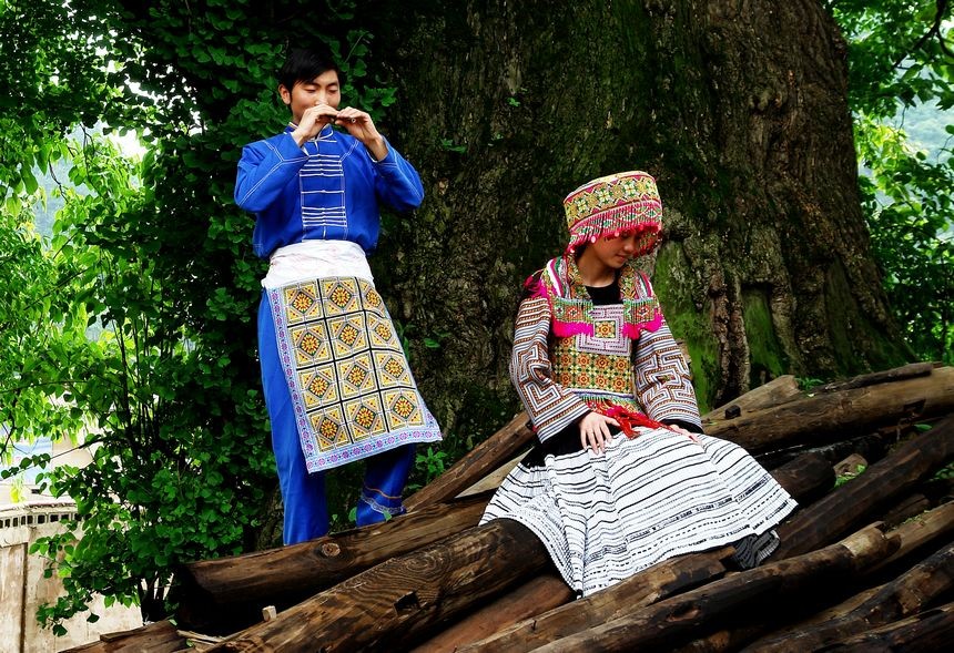 清镇市麦格苗族布依族乡的四印苗同胞正在表演姊妹萧。段彪摄