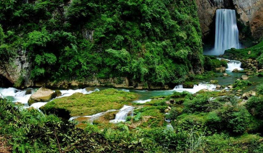 清镇市暗流河风景区羊皮洞瀑布。段彪摄
