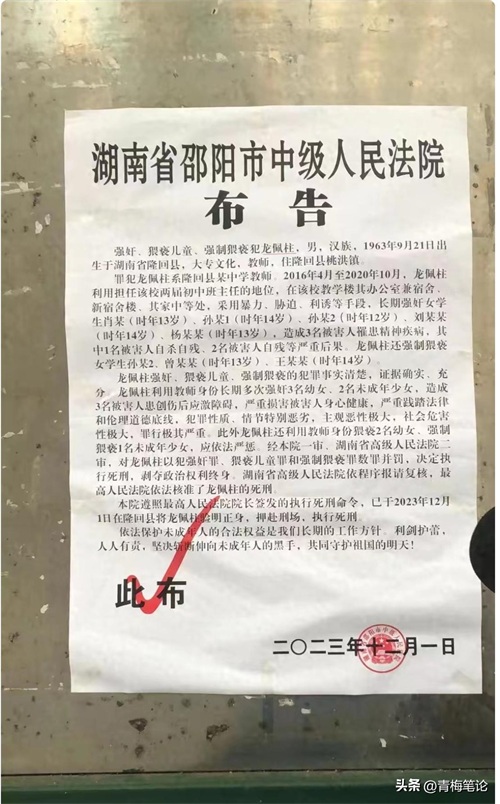 比这两个人更加恶劣的,还有前几天一则新闻报道的隆回县某中学的恶魔教师龙佩柱,他利用担任两届初中班主任的职务之便,利用四年半的时间,在自己的办公室兼宿舍以及新宿舍楼和他的家中,采用暴力、威胁、利诱等各种手段,强奸多名未成年少女,虽然他已经受到法律的严惩,被执行死刑,但对那些未成年少女造成的伤害却是无法逆转的。她们身心遭到了严重的损伤,都有严重的自残,自伤的精神疾病。