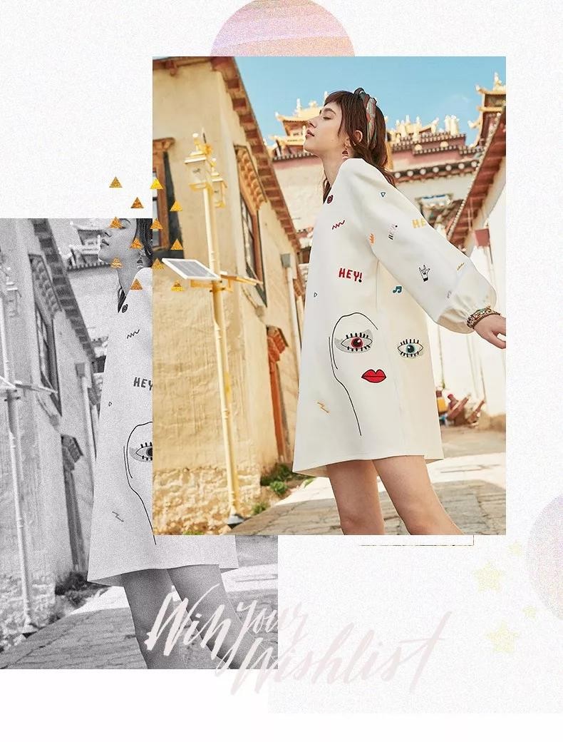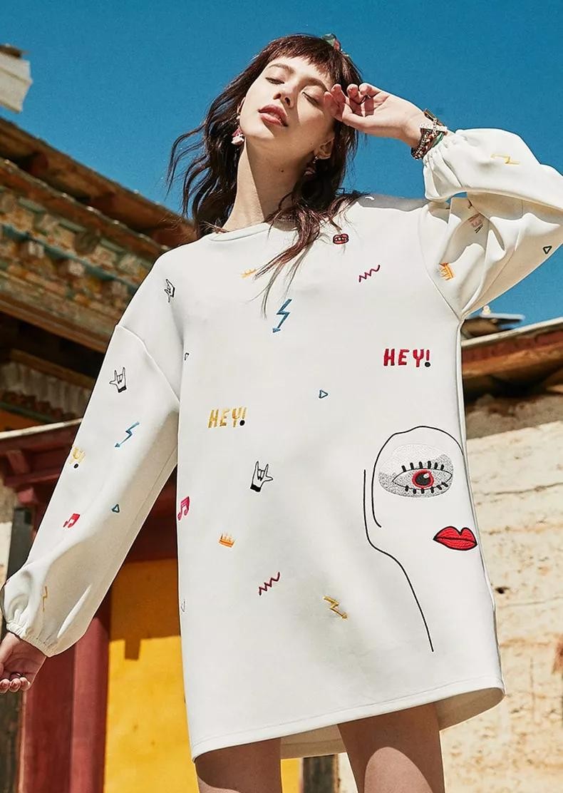 同样是卫衣,但我把这件放在了最后面,因为她与前面那件最大的不同是这件走的是清新风格。满身的童趣刺绣色彩斑斓,趣味十足,如果你想减龄选这件没错了。