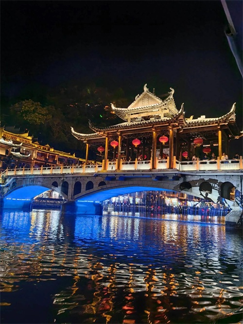 凤凰古城,这几年名气越发响亮。凤凰古城的名字,据说因背依的青山酷似一只展翅欲飞的凤凰而得名。而凤凰古城的夜景,某种程度上,比白天更美!泛舟夜游风凰古城,更有一种飘飘欲仙的感觉!