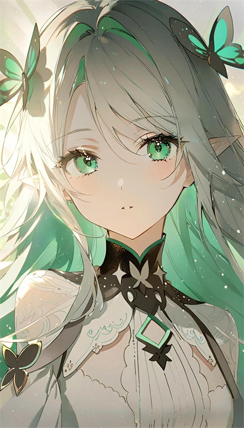精灵少女耳朵尖尖露俏皮,皮肤白皙若雪,散发迷人的灵动气息。