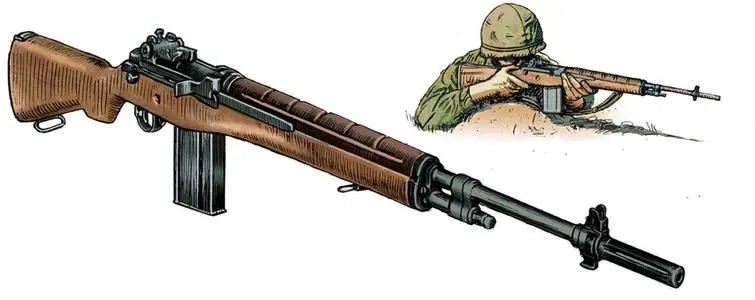 M1加兰德可以说射速高、射击精度高、可靠耐用;但却有着不小的缺点。首先单枪步枪重量将近10斤,导致美军步枪手机动性很差。再有就是八发弹夹式,在打完最后一发子弹后,弹夹会被自动弹出会发出清脆的响声,这导致近距离作战会被敌军预判美军火力情况,但随后的弹匣式就很好的规避了这一缺点。