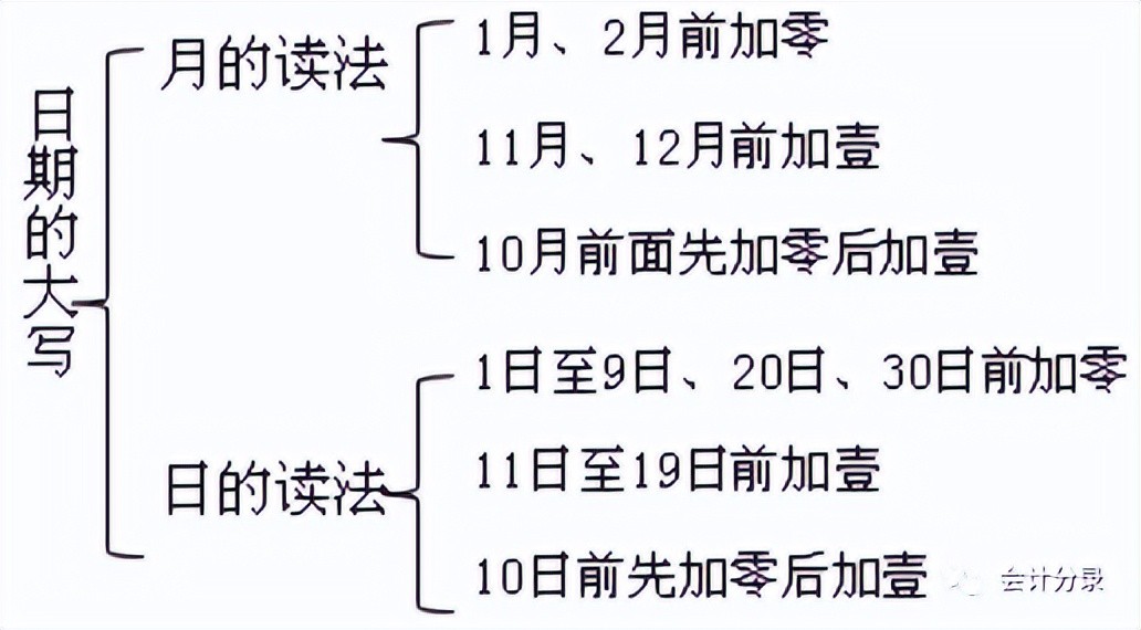 会计金额大写, 一律用正楷或者行书体书写,不得用“0、一、二、三、四、五、六、七、八、九、十”等简化字代替,不得任意自造简化字,比如以“毛”代“角”,以“另”代“零”,以“两”代“贰”。大写金额数字到元或者角为止的,在‘元’或者‘角’字之后应当写‘整’字或者‘正’字;大写金额数字有分的,分字后面不写‘整’字或者‘正’字。