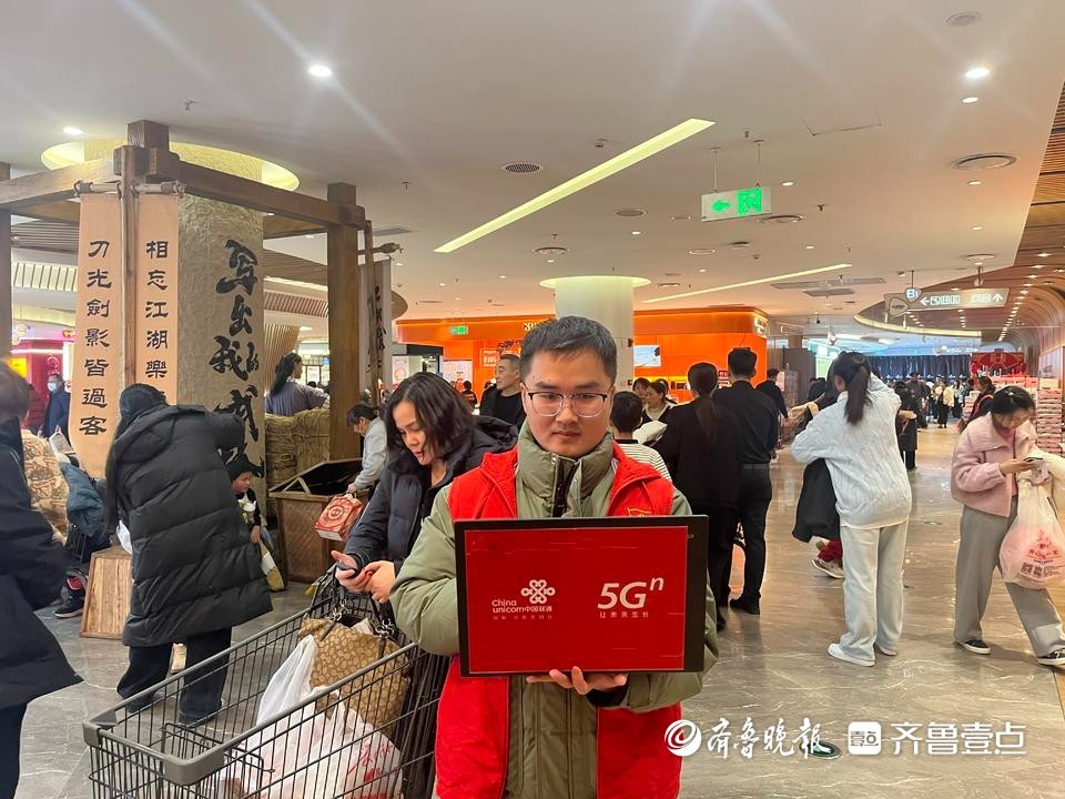 春节前夕,大型商超成为市民采购年货、休闲娱乐的聚集地。随着返乡人员大量涌入,商超内网络需求呈爆发式增长。菏泽联通精准发力,在市内各大商超部署了高性能的5G室内分布式基站,开通多载波聚合17处,大幅提升网络容量与覆盖范围。在热闹的购物区和温馨的餐饮区,5G网络平均下载速率可达600Mbps,上传速率达100Mbps,有力保障了市民扫码支付的便捷性、视频分享的流畅性,让节日的欢乐通过网络迅速传递。
