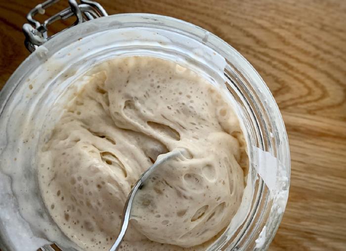 这种天然酵母是由面粉和水混合制成的,然后每天用发酵剂、水和更多的面粉来增加面团的体量,最后形成了酸面团酵母。