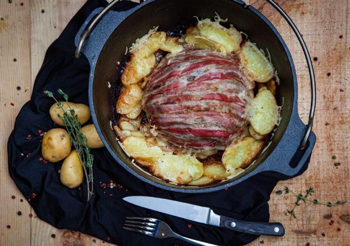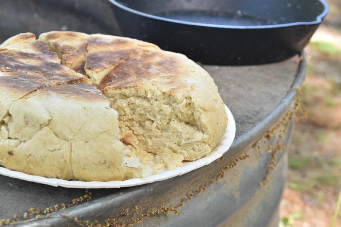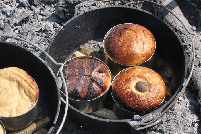 营地面包由通用面粉、盐、猪油或其他油、牛奶或水制成,面团擀成厚厚的圆形后,就可以放进荷兰烤肉锅里,烤至顶部和底部呈棕色即可。