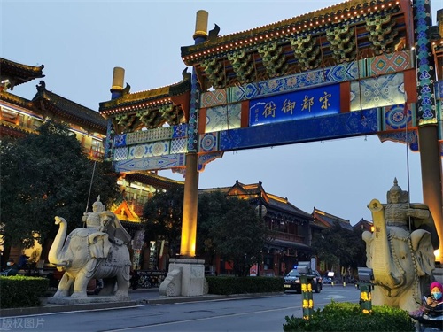宋都御街,是开封的一条仿宋商业街,街区再现了宋代御街风貌,可以看到繁楼、文化馆、牌坊、老店等建筑,还原的很好,到开封游玩,一定要夜游宋都御街,夜景很美,奢华壮观的繁楼亮灯后,璀璨迷人,梦回千年大宋,品尝开封著名的小吃,感受富贵迷人眼的汴京夜色。