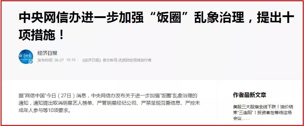 今天,中央网信办重拳出击,掀起了娱乐圈一股整顿风暴,剑指娱乐圈乱象。