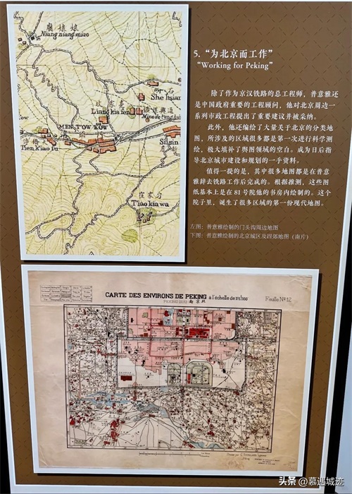普意雅除了担任铁路的总工,还兼职担任中国政府市政工程顾问,参与北京周边大量市政工程的规划提案工作。此外,他还编绘了大量关于北京的分类地图,成为日后指导北京城市建设和规划的一手资料。