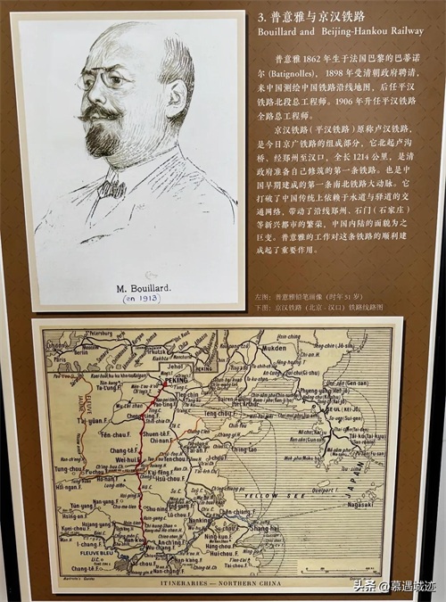 京汉铁路又称平汉铁路,全长1214 公里,是中国早期建成的第一条南北铁路大动脉,中国内陆的面貌为之巨变。普意雅所做的大量工作,对这条南北干线铁路的顺利建成起了重要作用。