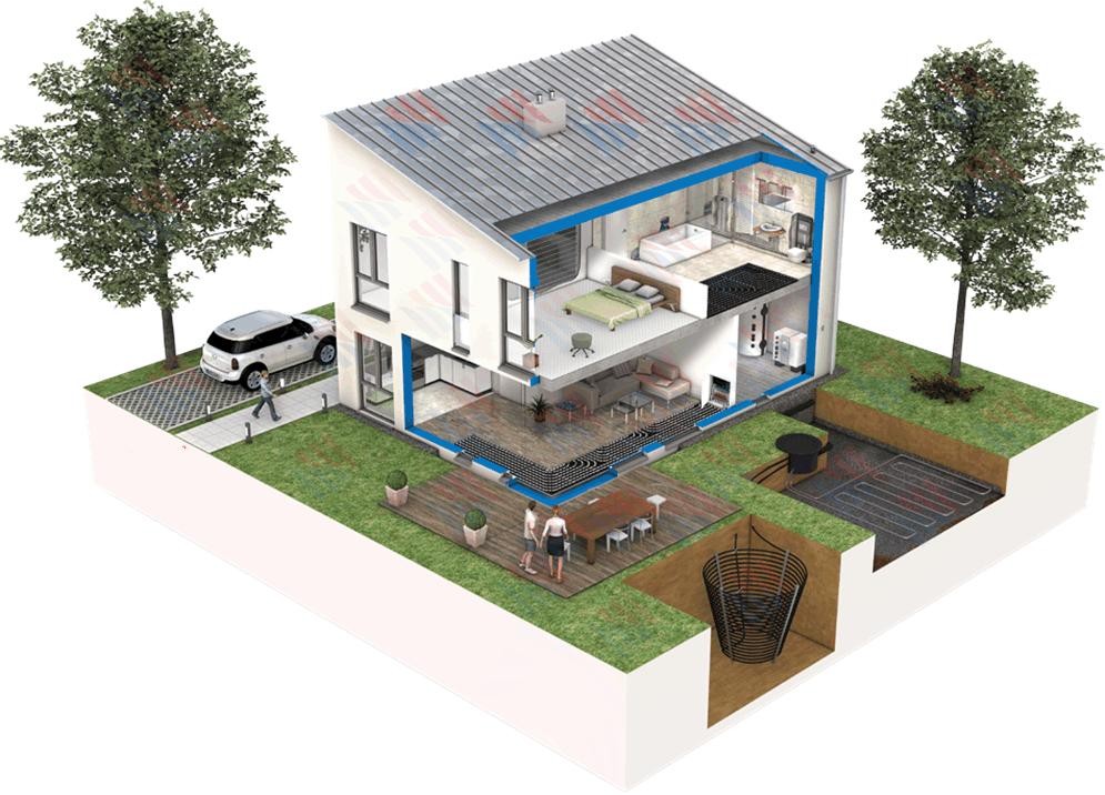 1) 适用范围:适用于花园面积有足够大的室外打井区域又对空调地暖舒适度都有需求的项目;