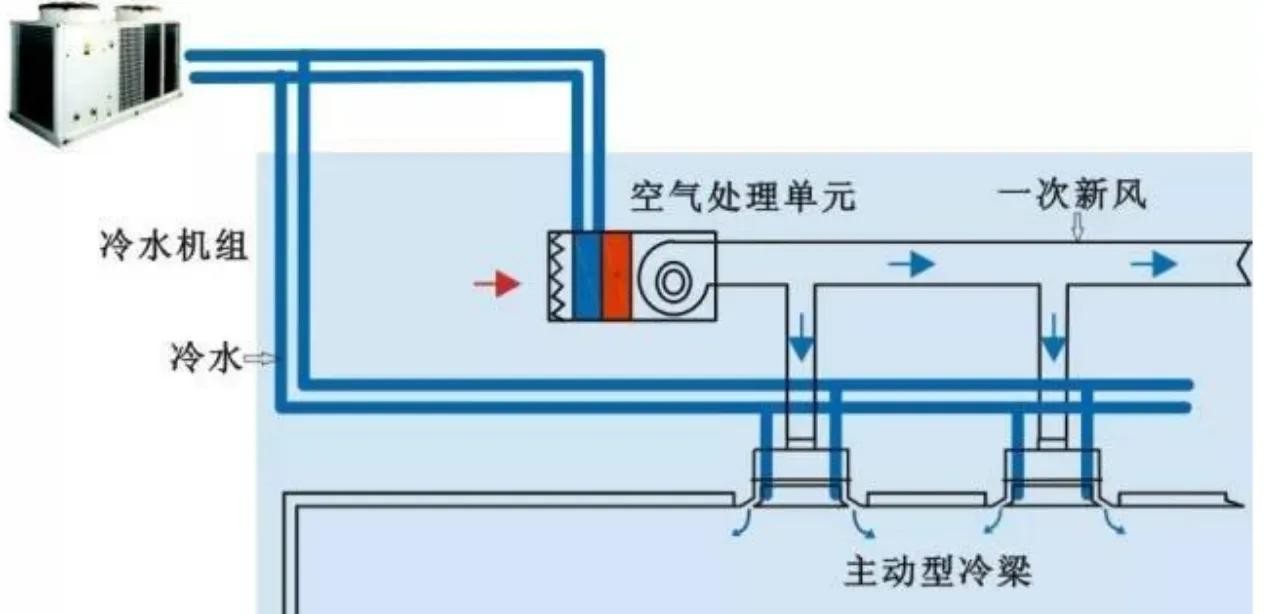 1)冷梁:是一种新风引导的气-水换热末端装置,根据是否引入新风,分为主动式冷梁和被动式冷梁;