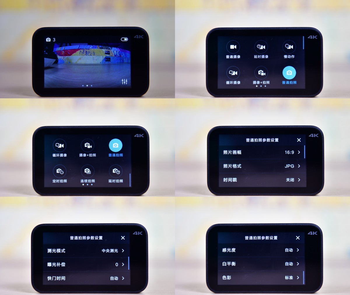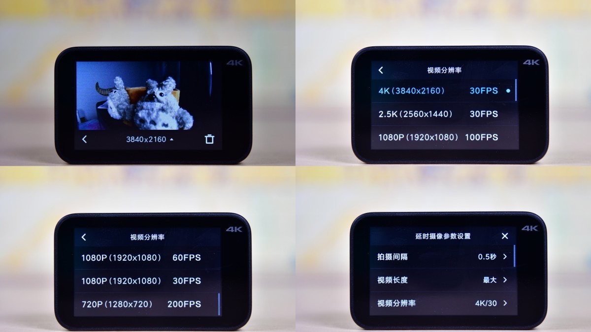 从拍摄功能来看,米家小相机可以拍摄从720p到4K各种分辨率的视频。值得注意的是,在1080p下最高可以达到100fs而720p更是有200fps的高帧率,所以实际等于有慢动作捕捉功能。另外,相机也可以拍摄800w像素(其实就是4K截图)的静态照片以及1080p下的广角矫正照片和最高速率为0.5s的延时摄影。所以说起来,功能还算是相当齐全的。当然了,本机也可以通过米家app在手机端上进行控制,各类参数调节与直接通过触摸屏控制完全一样,比较方便。不过,我在实际使用中发现使用app连接米家小相机会因为相机休眠而自动断开连接,而且我手机里的app只要一读取相册即崩溃重启,不知道是什么原因。不过,这些应该都只是通过固件升级就能解决的问题。
