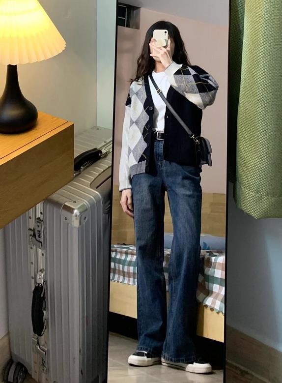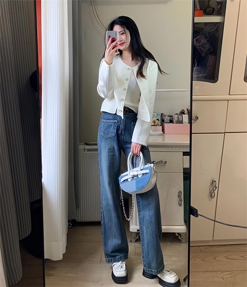 九分长度的牛仔直筒裤,对于一些腿粗和腿部比例不那么好的姐妹,真的是很合适的。