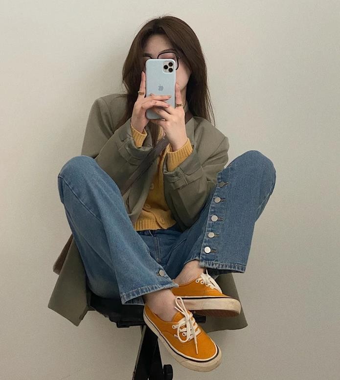 牛仔裤与西装外套的组合,真的能让你看起来韩范十足~而且,像西装这种自带干练严谨的外套,结合牛仔裤来配,真的是很好看的,至少能弱化西装带来的呆板。