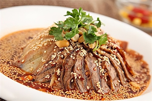 夫妻肺片这道菜非常出名,这一道美食在外国曾被翻译为“丈夫和妻子的肺片”,听起来还是怪可怕的。但其实夫妻肺片是四川成都的一道传统川菜。它主要由牛头皮、牛心、牛肚以及牛舌等食材作为材料进行卤制,卤制完以后再切成片。