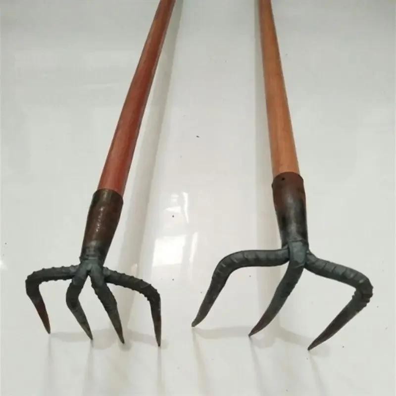 作为农具的钉耙,通常都是四齿,最多五齿。齿少了,抓不住稻草;齿多了,太笨重,耗费力气。有一种多齿耙子,但是齿太细小,结构强度不足,不能作兵器。当然,作为小说人物的神兵利器,夸张一点很正常,九齿也不为过。