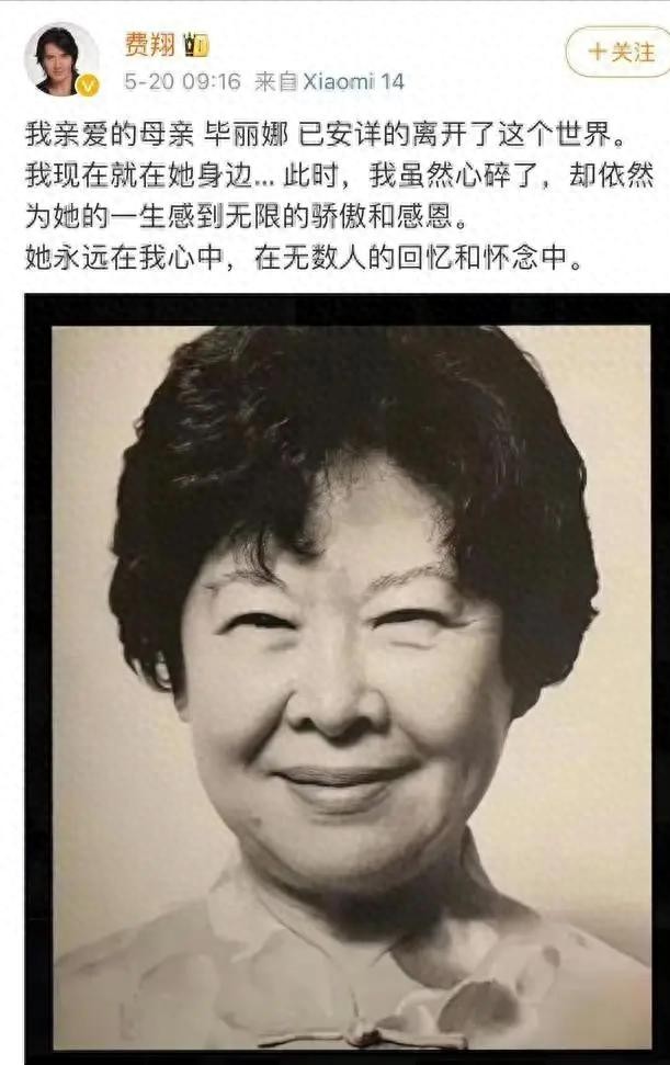 在这个春暖花开的五月,娱乐圈传来了一则令人心痛的消息——5月20日,费翔通过社交媒体公布了母亲毕丽娜去世的消息。这一消息如同一颗重磅炸弹,瞬间在网络上引起了轩然大波。费翔,这位在舞台上光芒四射的明星,此刻却披露了他内心最柔软的一角,失去了至亲的悲痛。
