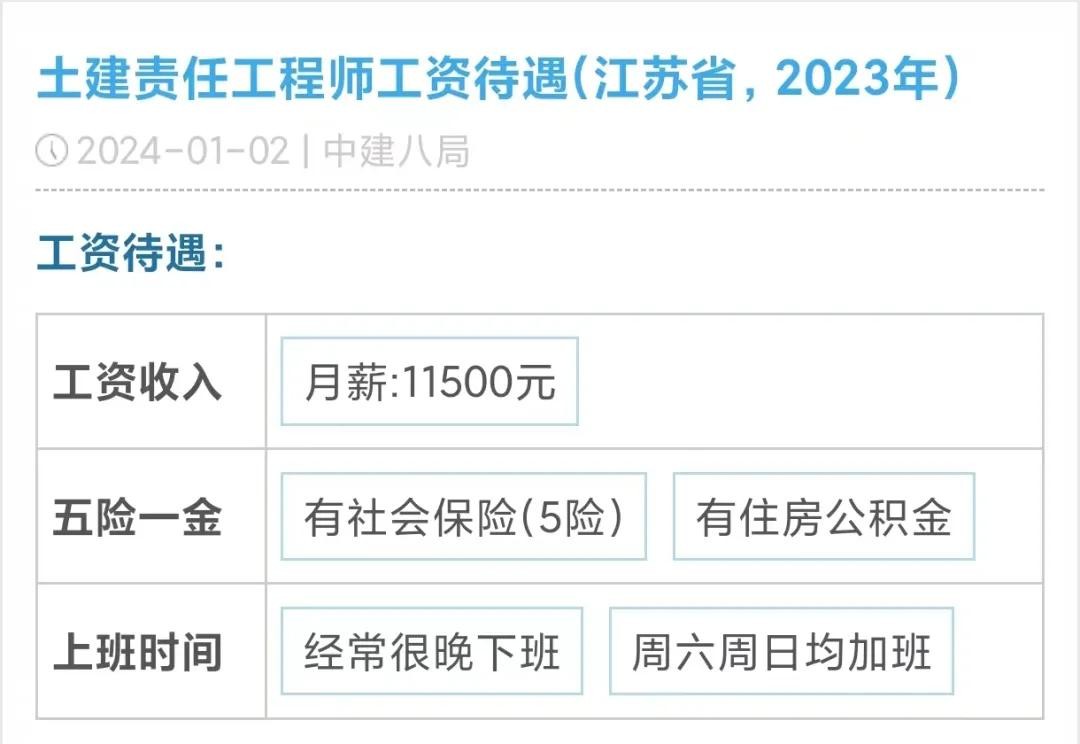 看看不同的员工,不同的职位,他们的薪酬差异。同样的国企单位,地区因素影响也较大,项目的效益也会影响薪酬,入行后自己要去对单位进行深入研究,知道哪里更好,就朝哪里努力。有的岗位能准时下班,有的岗位需要很晚下班,甚至周末都需要轮班,具体就看自己的真实工作感受。