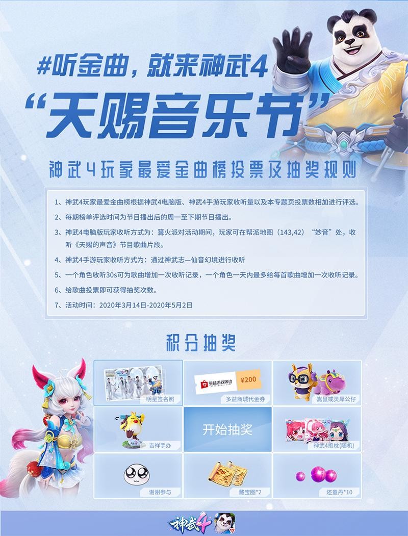 值得一提的是,《天赐的声音》与《神武4》也遥相呼应,共同打造了一个“天赐音乐节”,让彩虹合唱团的更多金曲能够在游戏中被玩家收听。同时,玩家们还可以在游戏中为彩虹合唱团以及其它歌手的作品投票打榜。除此之外,在《神武4》电脑版全新开启的“神武音乐秀”中,玩家们还可以一展歌喉唱出彩虹的金曲,最后角逐“神武歌王”的冠军头衔。
