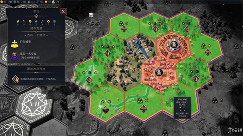 这个机制可以简单理解为《文明6》中“城市建造”与“单元格拓展”的结合。城市发展到一定规模时会获得一次“城市发展”的机会,玩家可以在未开发的地块上放置新的建筑,并向外扩展城市的单元格范围。