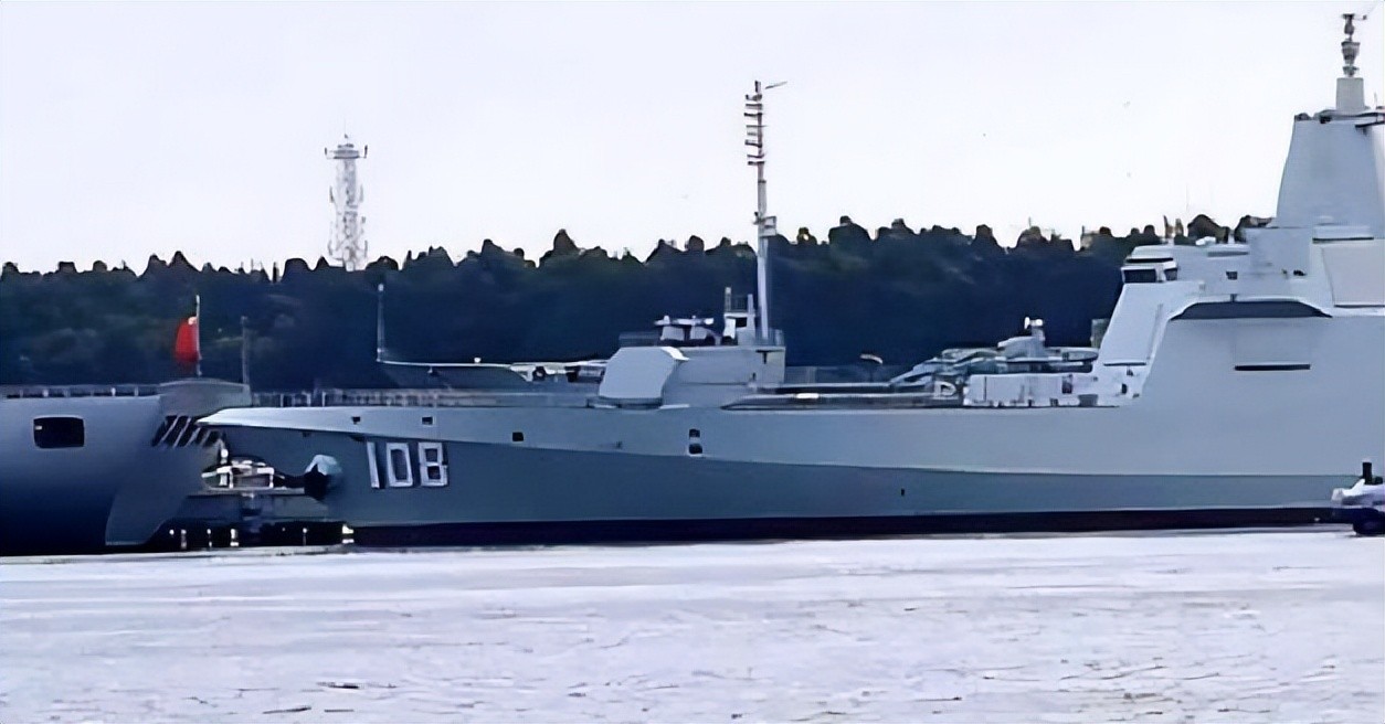 在另一张照片中,出现了一艘只露出船尾的舰艇,即055型驱逐舰。这艘舰艇比055b更大,055b的排水量可达14000吨,而055型驱逐舰的排水量可达12000吨。新舰艇的体积也比055b大,排水量高达20000吨。