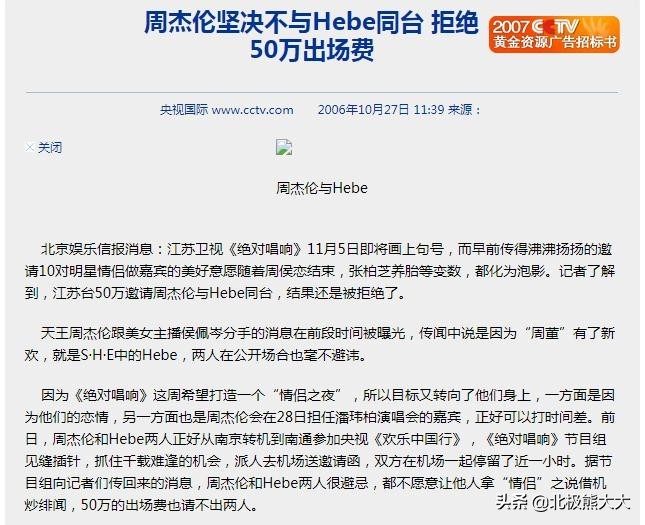 要知道,当时周杰伦的女友是美女主持人侯佩岑,两人相恋的事情在圈内几乎是公开的秘密,而侯佩岑本人也是周杰伦唯一承认过的正牌女友。