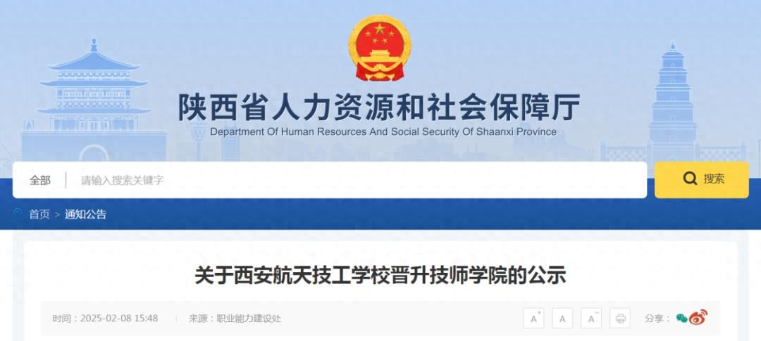 公示!西安航天技工学校拟按程序晋升技师学院