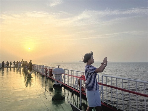 大小新闻客户端8月23日讯(YMG全媒体记者 刘海玲 通讯员 刘嘉 摄影报道)“海路”绘就旅客幸福出行新画卷——坐铁路轮渡,看火车上船,同火车共渡渤海,站在甲板迎接日出,于蓝天之下喂食海鸥,在海风轻拂中享用烧烤。这个夏天,辽东半岛与山东半岛之间出行需求持续“升温”,乘坐铁路轮渡穿越渤海湾已经成为旅客出行的一大亮点。自7月1日暑运启动至8月20日,中铁渤海轮渡公司共开行348个航次,渡运旅客10.34万人,渡运滚装汽车1.41万辆。