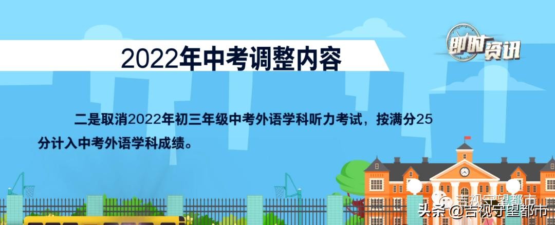 二、取消2022年初三年级中考外语学科听力考试,按满分25分计入中考外语学科成绩。