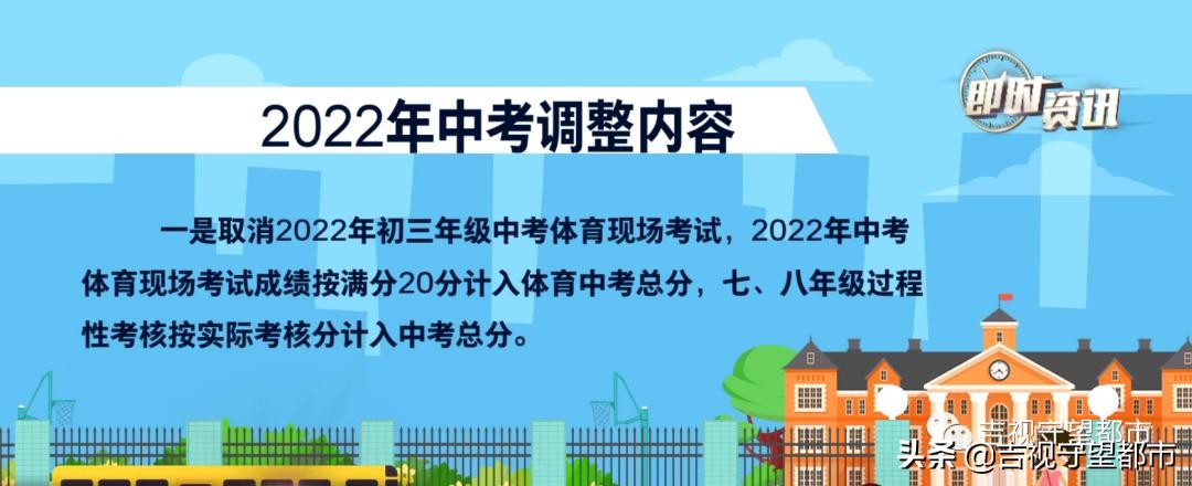 一、取消2022年初三年级中考体育现场考试,2022年中考体育现场考试成绩按满分20分计入体育中考总分,七、八年级过程性考核按实际考核分计入中考总分。