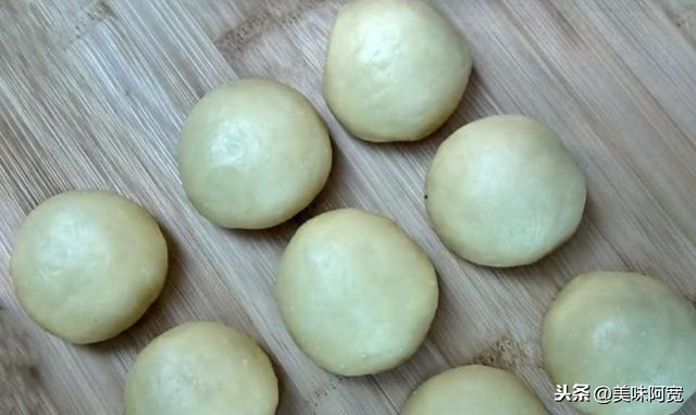首先准备低筋面粉300克,打上3个鸡蛋,放上酵母3克、白糖30克、纯牛奶60克搅拌成絮状,再加上软化的黄油30克,下手揉成一个光滑的面团,醒发至2倍大。面团醒发好后,先揉搓出里面的空气,然后分成大小均匀的剂子(300克面粉,我切了15个剂子),再把每个剂子揉圆,再醒发10分钟。