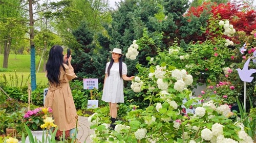 虽然上午绵绵细雨,也有不少游客朋友慕名前来游园。下午泡泡公园里陆续迎来了更多的游客,除了附近居民外,还有旅游团、学生春游以及公司团建,现场精致的组团花境和主题展园,令市民游客眼花缭乱,应接不暇。